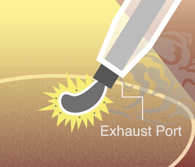 VIGEON positions the exhaust point at the front end of the electrocautery device, removing the smoke instantly as it is generated.